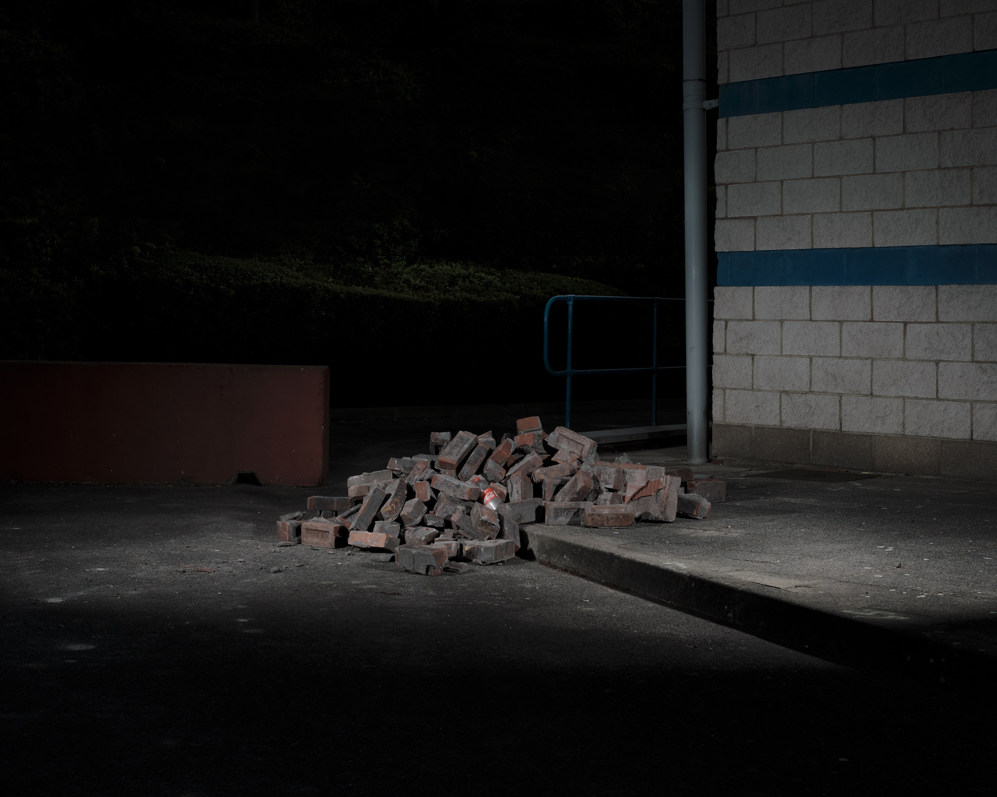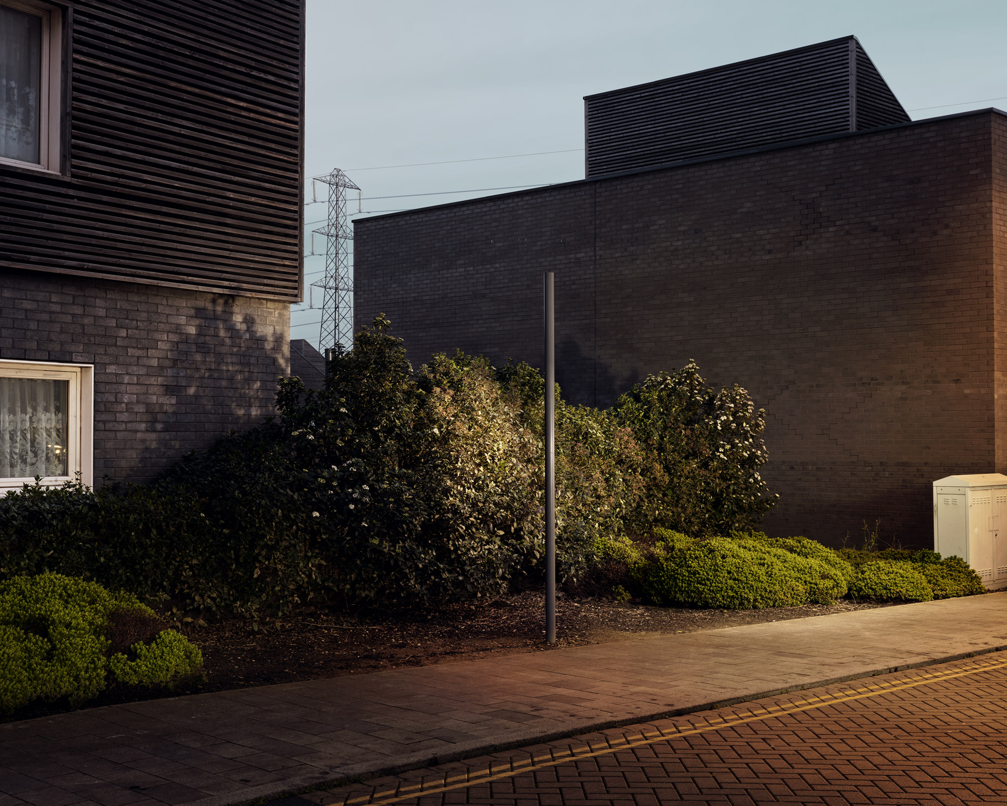 Capturing these diametrically opposed landscapes though imagery of vistas, structures and materiality I investigate the nature of the ‘periphery’. It is a world that exists on the outskirts and fringes of what we associate as place, where alienation and control rule. Choosing the mundane, I focus on the dichotomy between realism and fiction within the images which allows me to explore the contradicting narratives of these spaces in permanent flux. This project attempts to place the viewer in ambiguous relation to the subject, deliberately using unspecific locations to conjure unsettling anxieties. Hinting towards a dystopian future and showing our fragile contemporary condition.